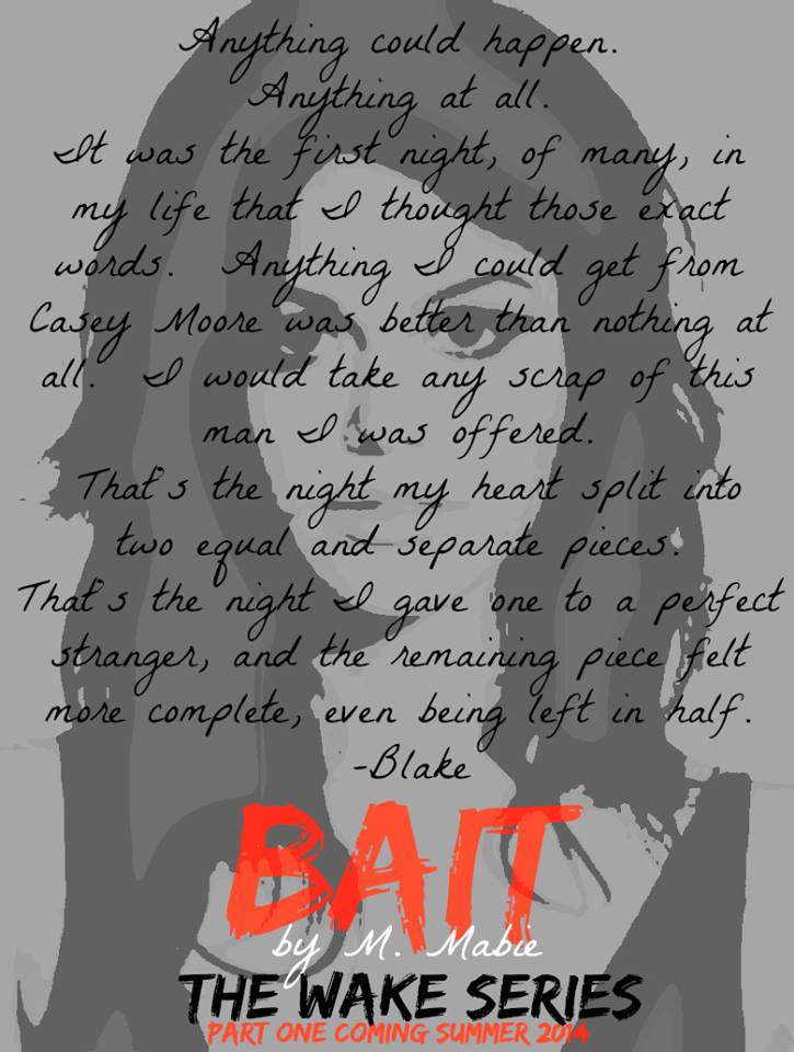 Published June 4, 2014 at 725 × 960 in Bait (The Wake Series #1) by M. Mabie (It’s a Cover Reveal!)
